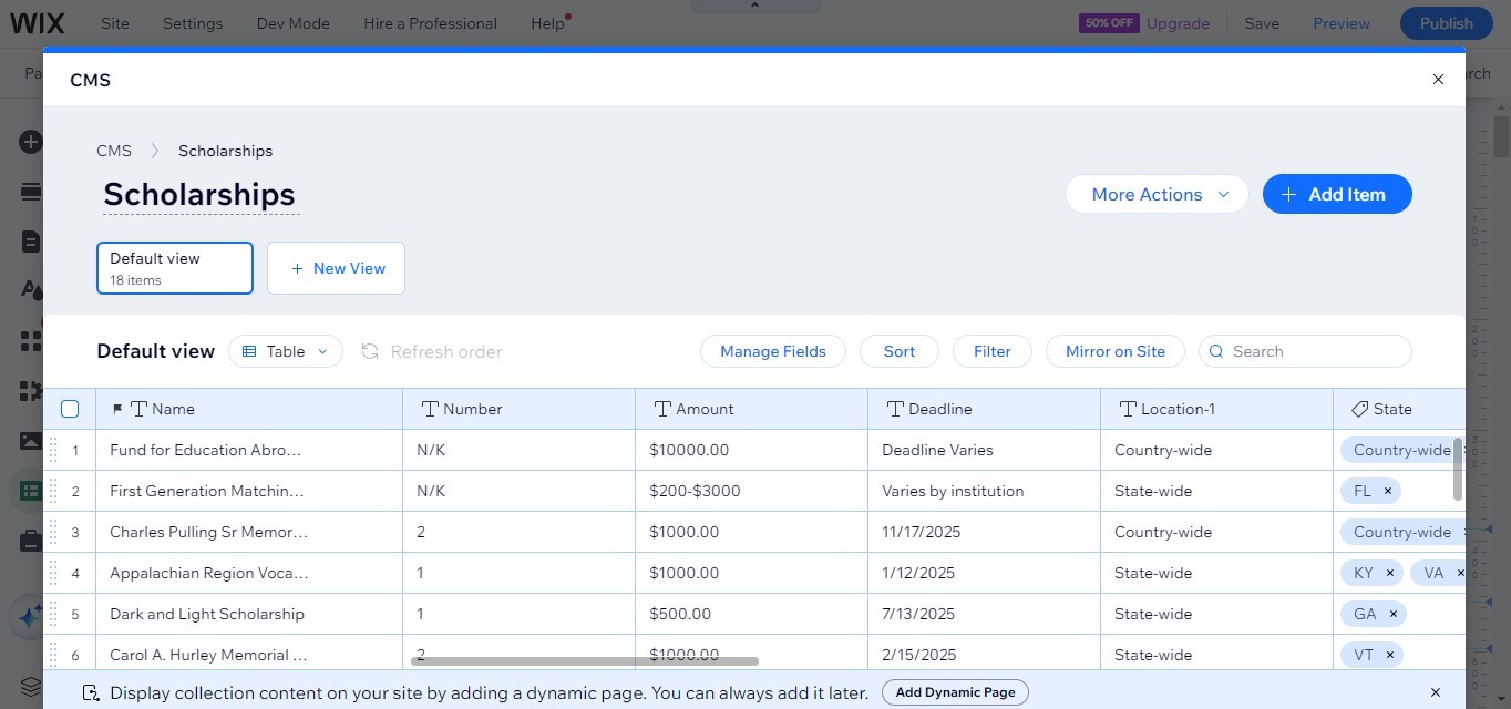 Create a CMS dataset to display available scholarships, and add filters to help users find the best matches.