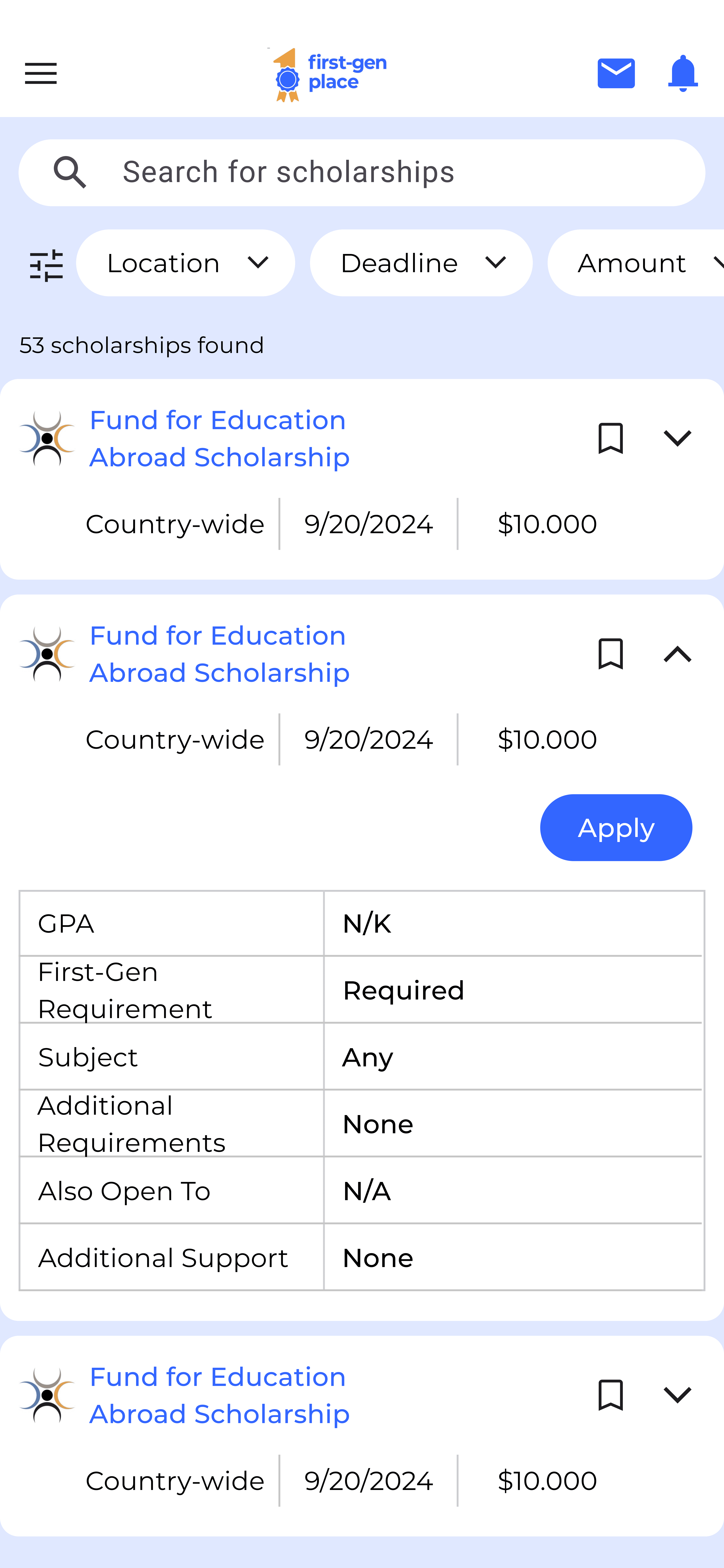 Presented all scholarship information at once. Used visual hierarchy, different typography weights, and spacing to make the information easily scannable.