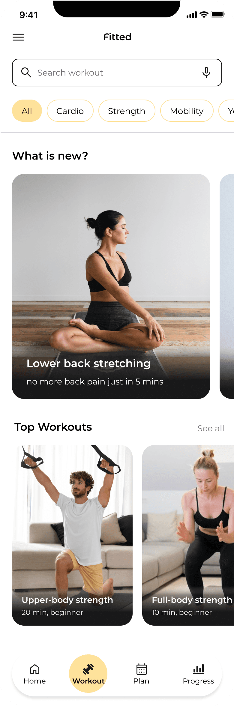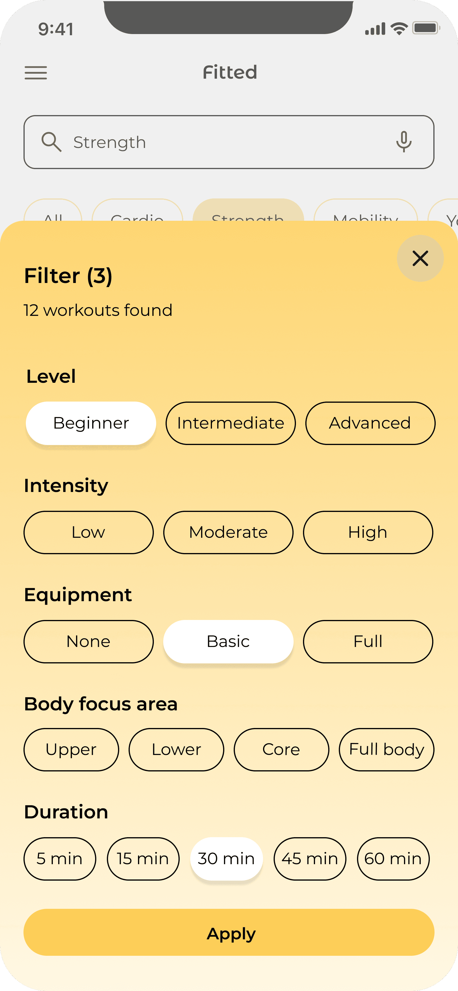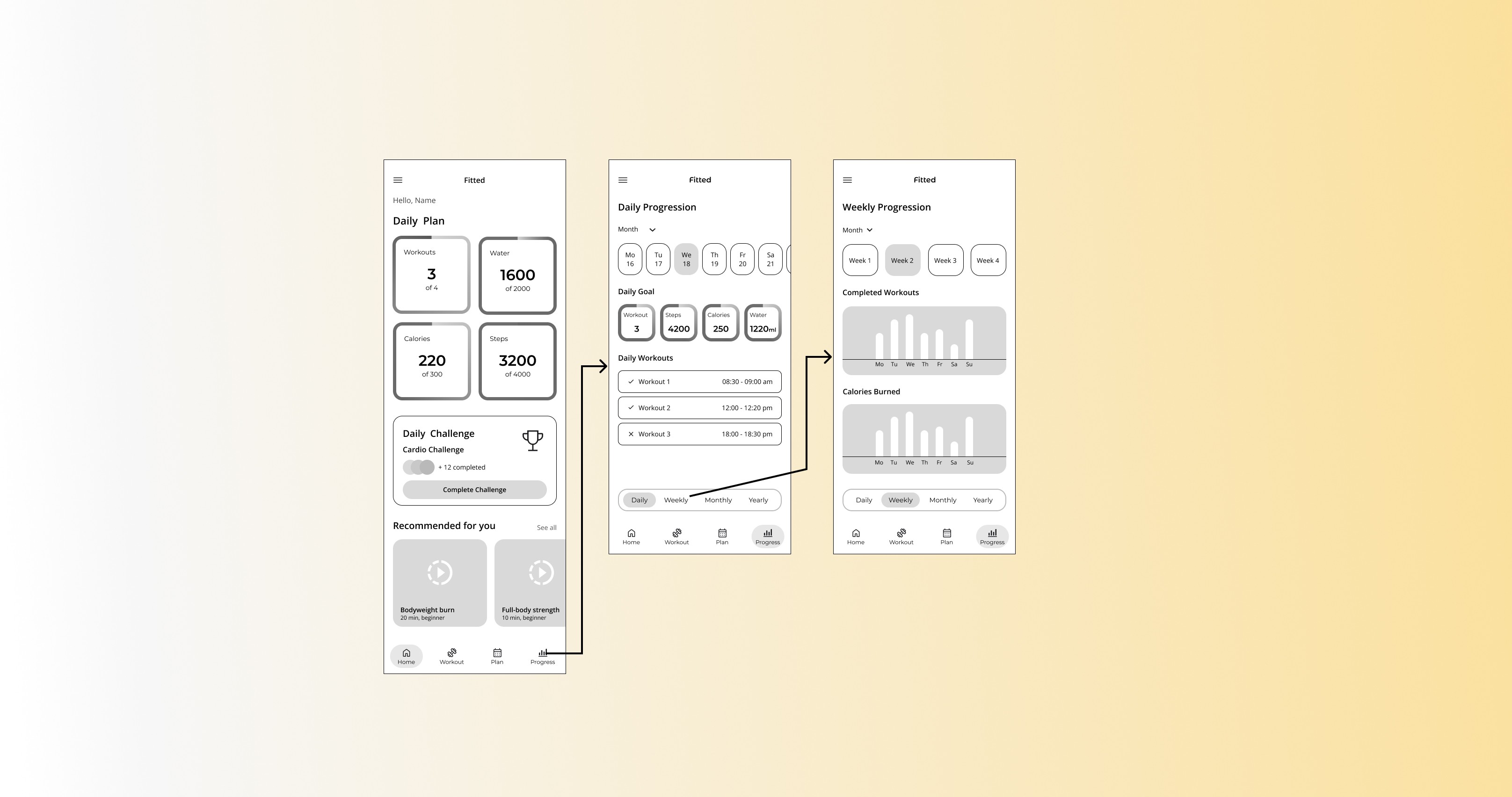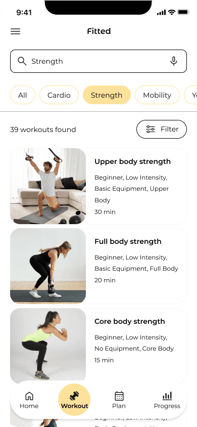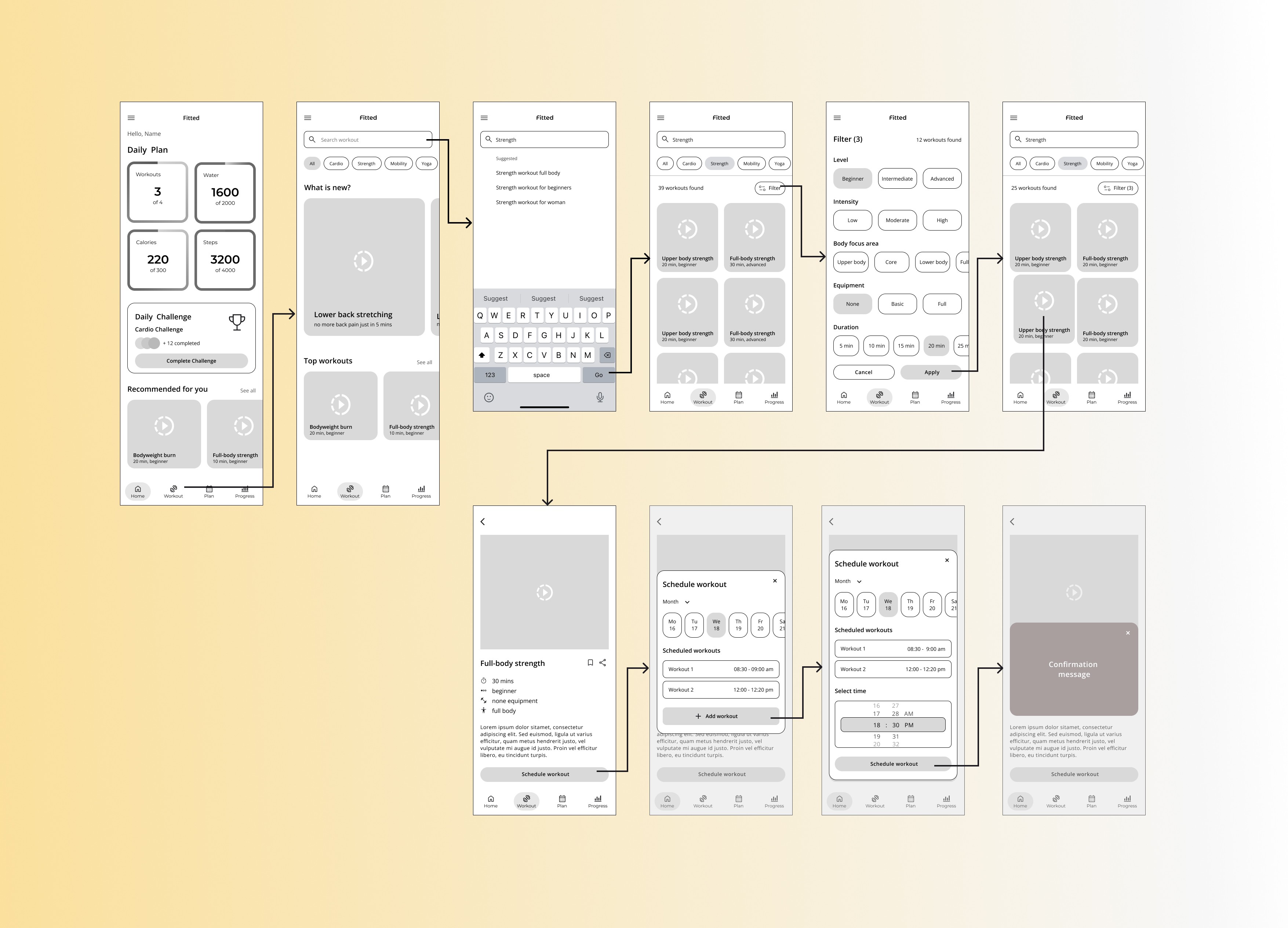 Fitted is a web application that I created during my UI Design course at Careerfoundry. The goal of this app is to help people get into an exercise routine that suits their level, schedule, and interests.