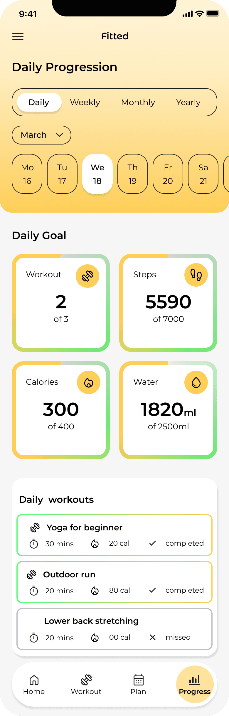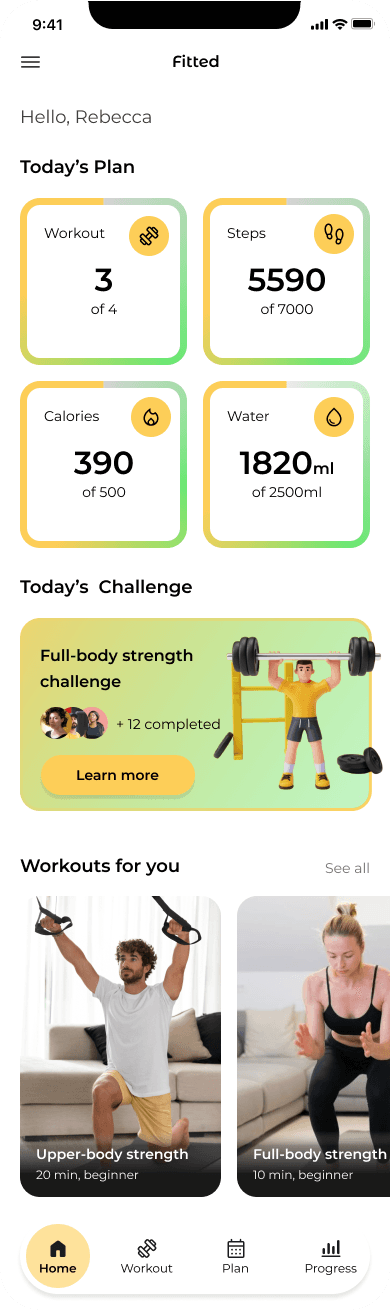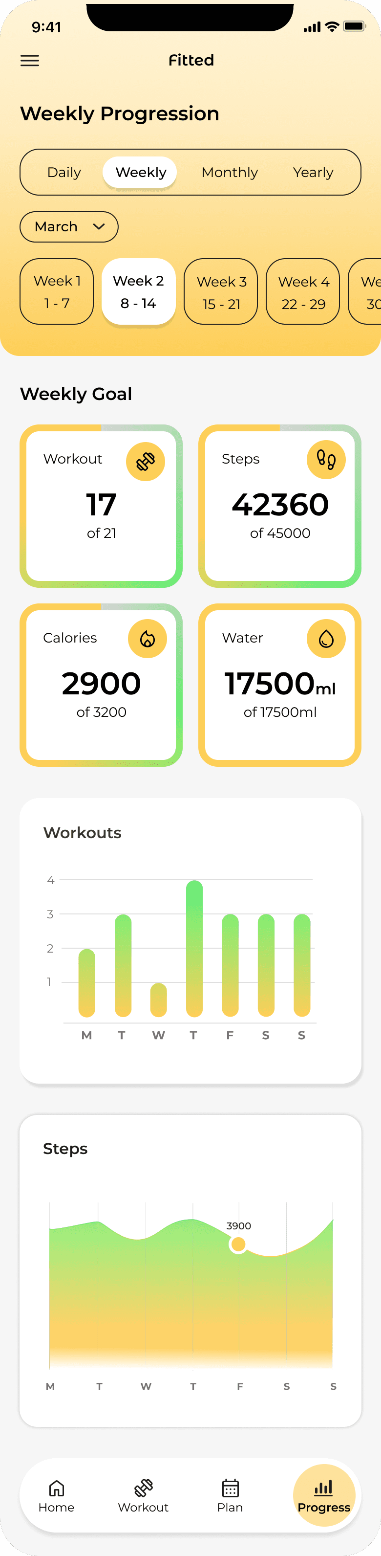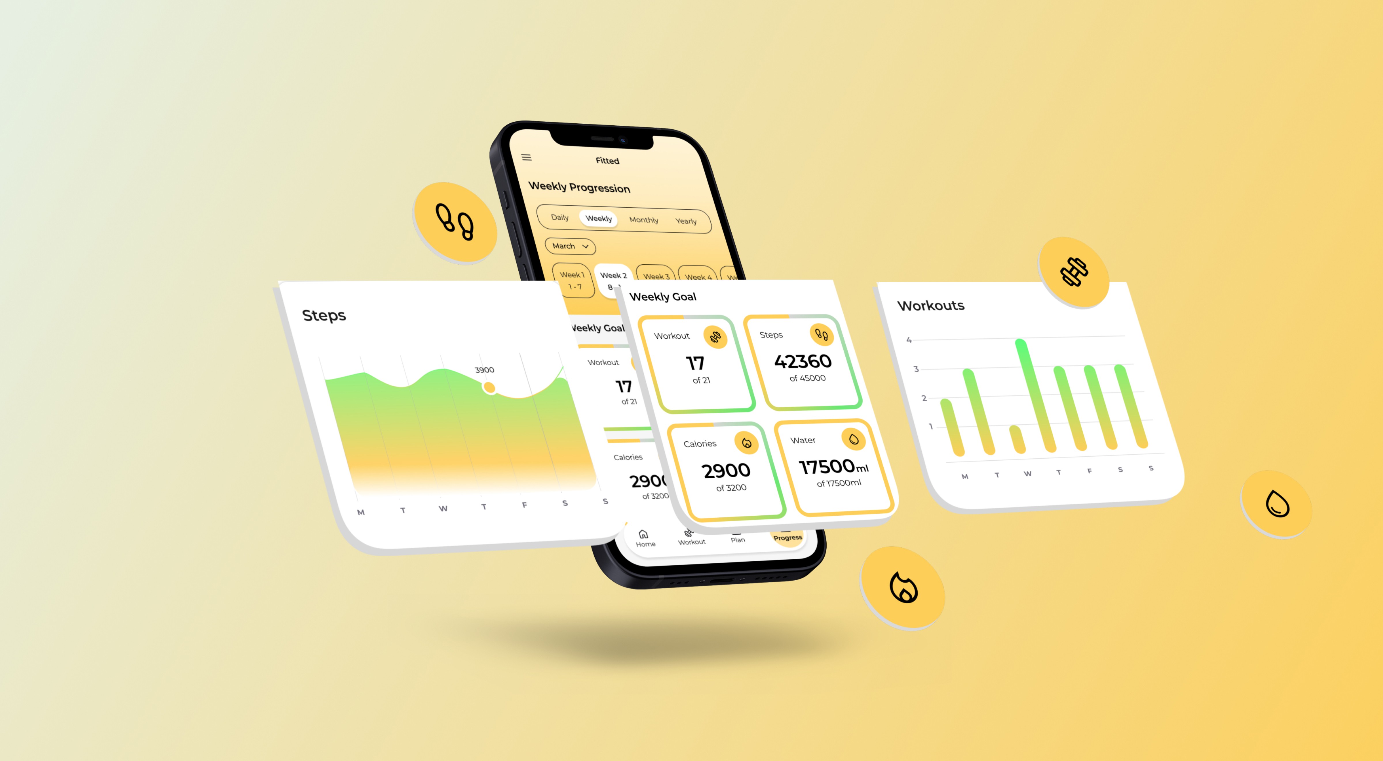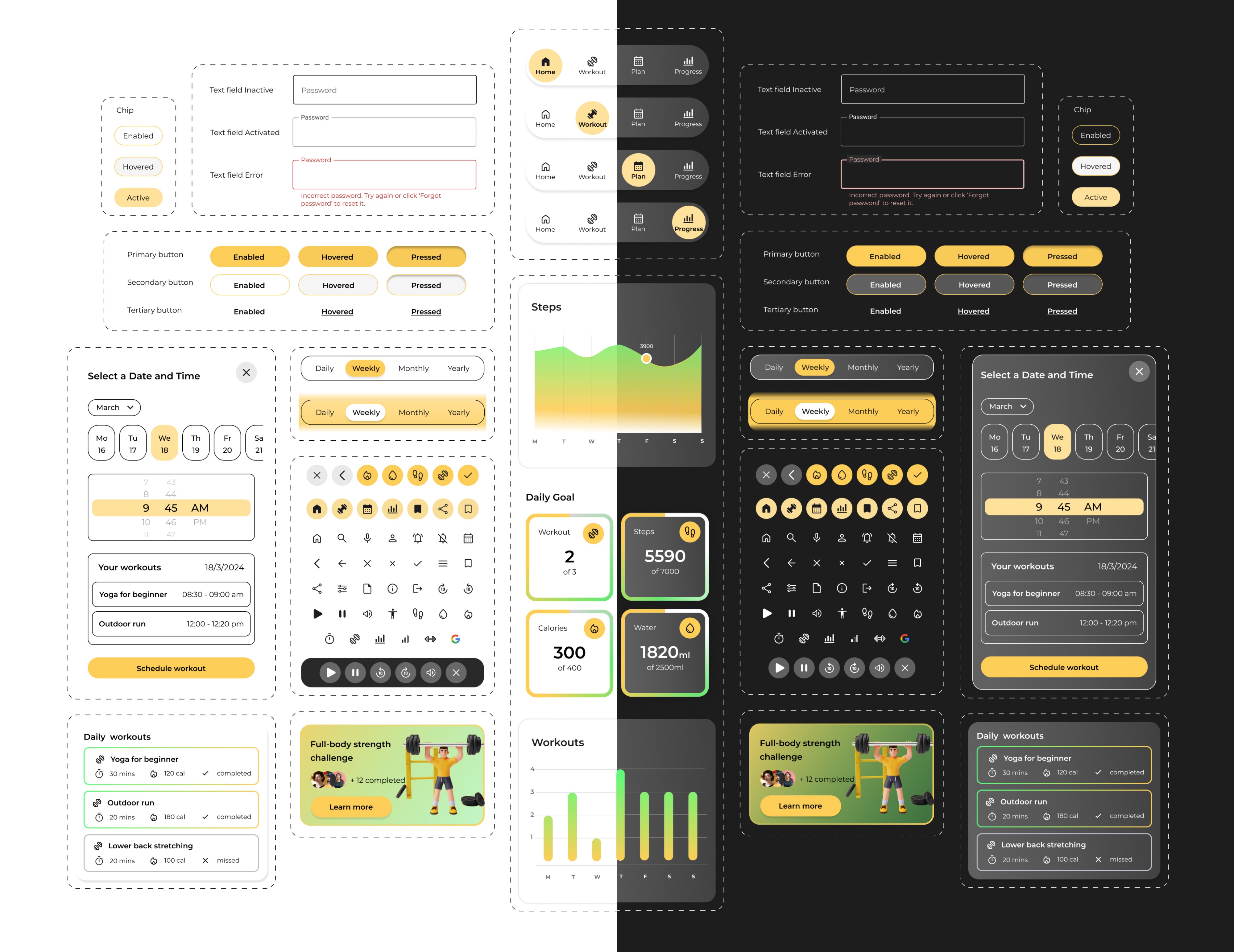 The main goal was to find a colour palette that energizes and motivates people who are new to fitness, without being too overpowering or aggressive.