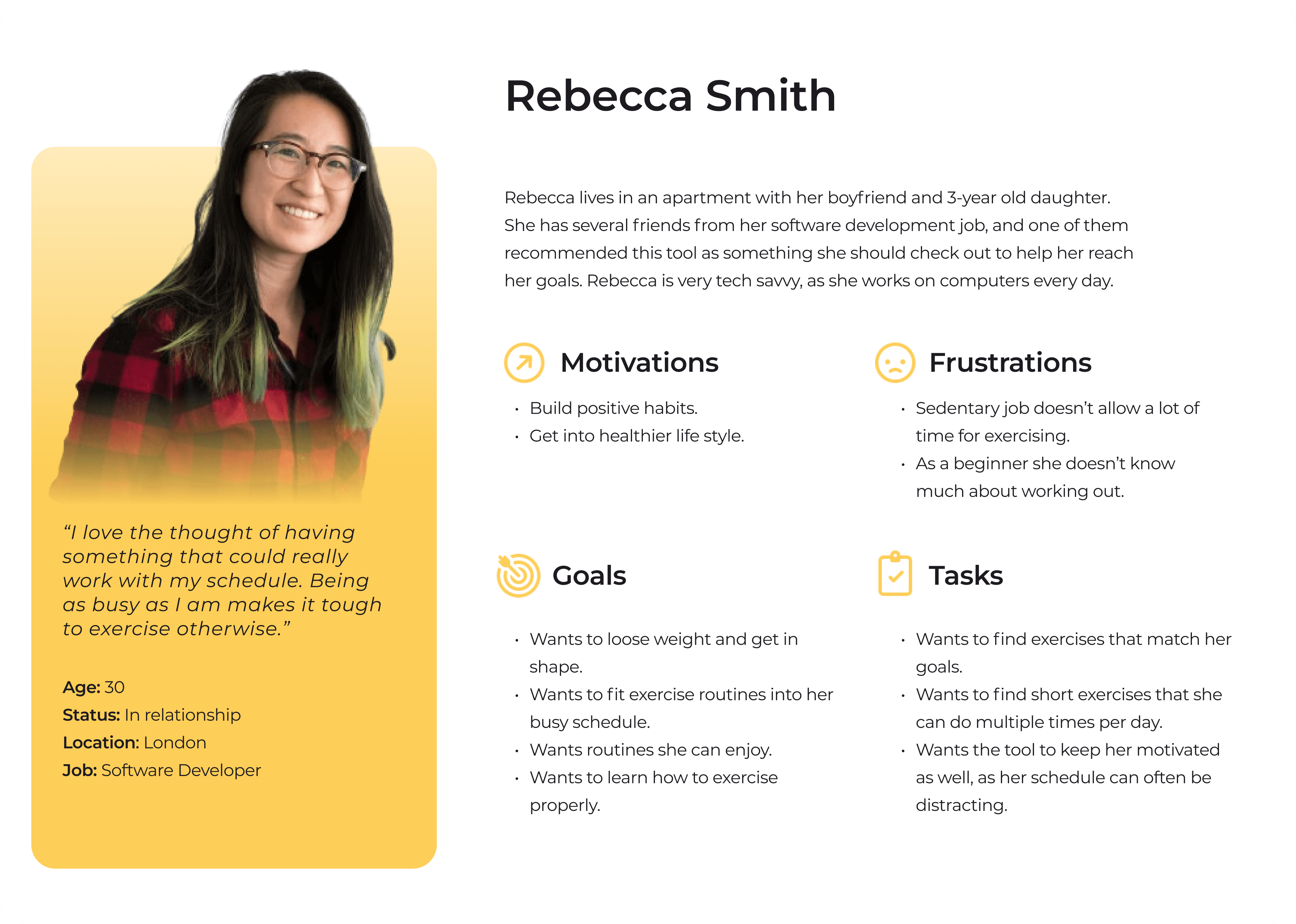 Our users need a way to find exercises that suit their level and fit into their everyday schedule because they are new or returning to exercise, want to stay motivated, and get into a healthy routine.